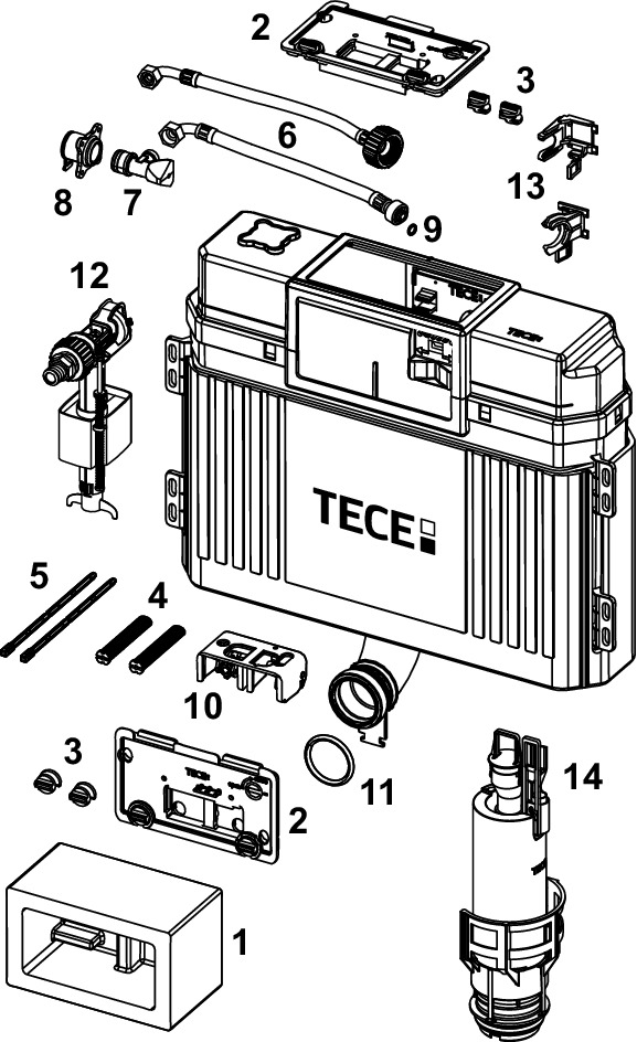 Spłuczka podtynkowaTECETECE, 522 x 485 x 141 mm, uruchamiana od góry, uruchamiana od przodu, z kolanem odpływowym 50mm