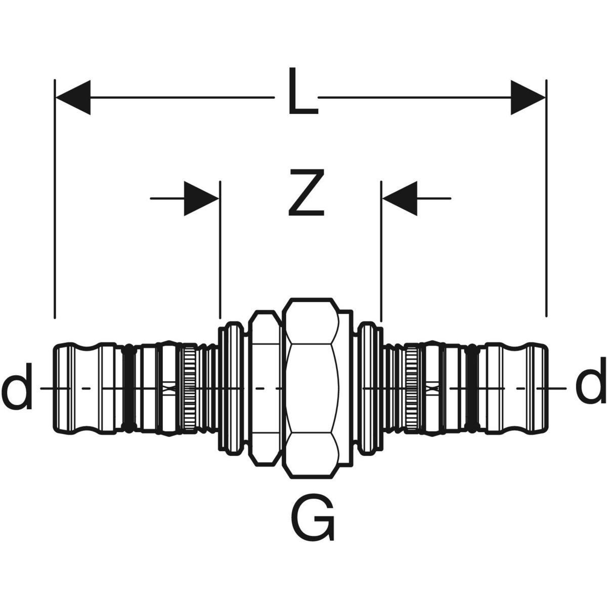 Śrubunek GEBERIT Mepla, miedź / miedź, 16 mm, DN 12 x 16 mm x DN 12 (końcówka wciskowa x końcówka wciskowa), (głębokość: 20.5 mm) z uszczelką