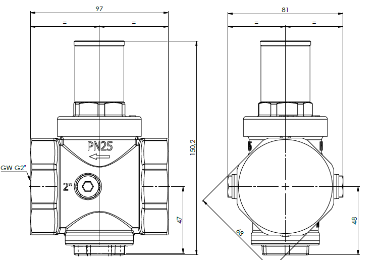 Standardowy reduktor ciśnienia wody BPR 406, GW G2'', 1 ÷ 5,5 bar