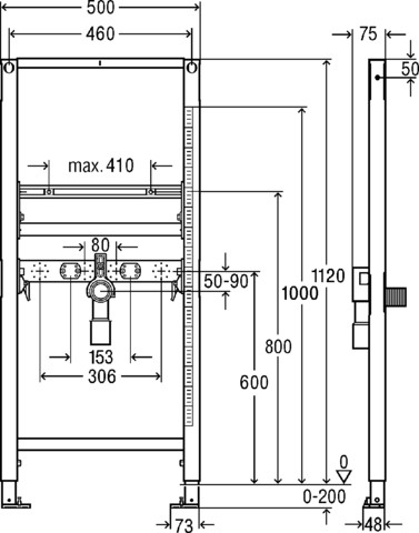Stelaż podtynkowy do umywalki VIEGA 8535, 1120 x 500 x 75 mm, bateria: stojąca, regulacja wysokośći