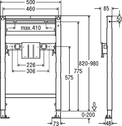 Stelaż podtynkowy do umywalki VIEGA 853631, 820 x 500 x 85 mm, bateria: stojąca, regulacja wysokośći