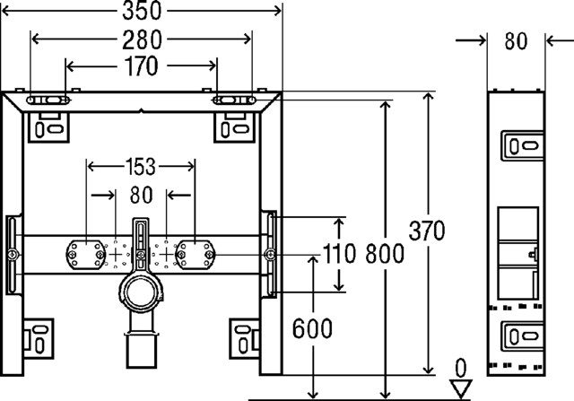 Stelaż podtynkowy do umywalki VIEGA 8550, 370 x 350 x 80 mm, bateria: stojąca, regulacja wysokośći