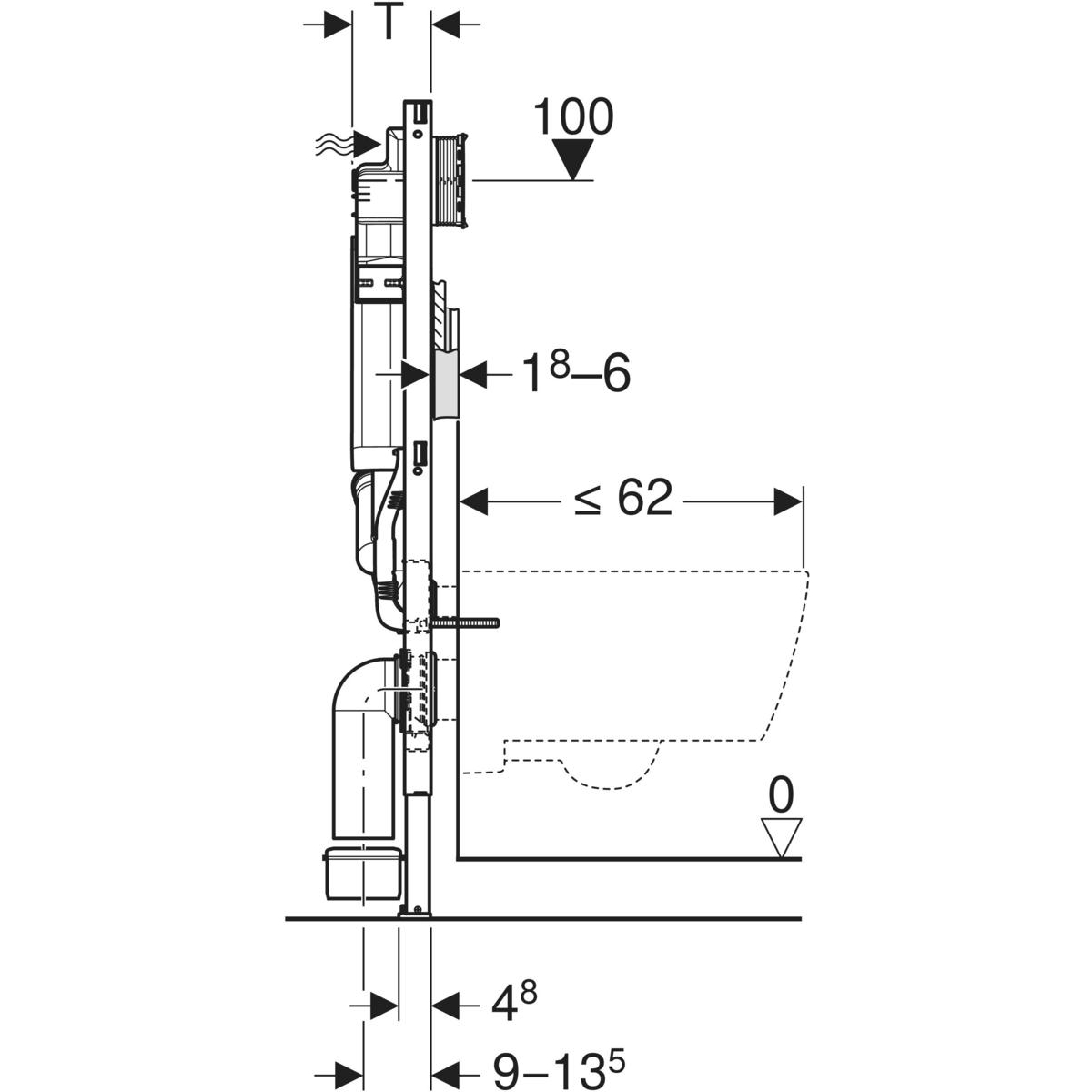 Stelaż podtynkowy do WC GEBERIT Duofix z odciągiem bocznym, Sigma, 1120 x 500 x 120 mm, regulowana wysokość, ze spłuczką