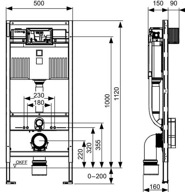 Stelaż podtynkowy do WC TECE profil, 1120 x 500 x 160 mm, regulowana wysokość, ze spłuczką