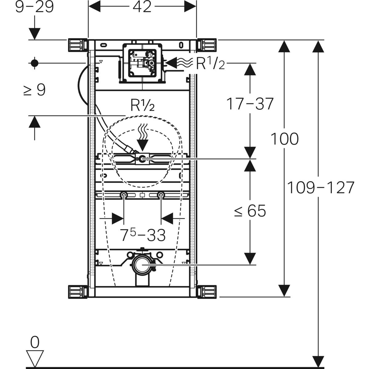 Seria 2025 Statyczna rama samonośna, zabezpieczona przed korozją powłoką malowaną proszkowo Rama do wiszących misek WC o wymiarach przyłączeniowych zgodnych z normą EN 33 i wysunięciu do 70 cm Z wysuwaną blachą do bocznego mocowania nad elementem na profilach metalowych lub drewnianych bądź na elementach konstrukcyjnych Geberit Duofix Alternatywna pozycja mocowania wspornika dystansowego Obrotowe stopy, odpowiednie do montażu w profilach U UW 50 i UW 75 Stopy można zamontować w szynie systemowej Geberit Duofix bez użycia narzędzi, bez dodatkowych komponentów Ocynkowane nogi montażowe, zabezpieczone przed korozją, antypoślizgowe Kolano przyłączeniowe z możliwością montażu na różnych głębokościach bez użycia narzędzi, zakres regulacji 45 mm Spłuczka podtynkowa Geberit Sigma 12 cm, z izolacją przeciwroszeniową Do uruchamiania z przodu, nadaje się do spłukiwania jednoilościowego, dwudzielnego i spłukiwania z funkcją "stop" W przypadku ustawień fabrycznych ponowne spłukiwanie możliwe natychmiast Prace montażowe i serwisowe przy spłuczce podtynkowej bez użycia narzędzi Przyłącze wody z tyłu lub na górze na środku Obudowa ochronna otworu rewizyjnego z możliwością skrócenia, chroni przed wilgocią i zabrudzeniami Z peszlem ochronnym do dopływu dla toalet myjących Geberit AquaClean i do przewodu przyłączeniowego Mocowanie przyłącza elektrycznego i Power & Connect Box Do metalowych i drewnianych ścianek konstrukcyjnych Do ścianek systemowych Geberit Duofix Do montażu w ściankach instalacyjnych o częściowej wysokości lub wysokości pomieszczenia Do montażu w ściankach działowych na wysokość pomieszczenia Do wysokości warstw podłogi 0–25 cm Do misek wiszących
