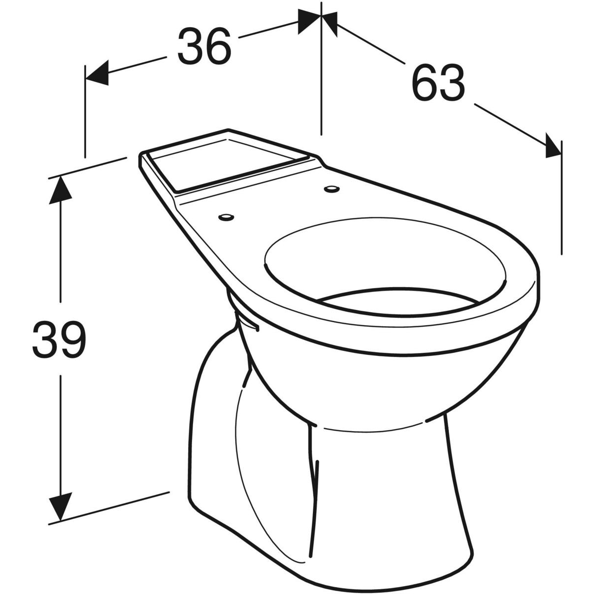 Zastosowanie: Do montażu w małych łazienkach i w łazienkach gościnnych Charakterystyka: Stojący Ceramiczna miska WC lejowa Odpływ pionowy Typ 1, pełna ilość 6 / 5 l, wg EN 997 Z krawędzią Zakres dostawy: Miska ustępowa Elementy mocujące