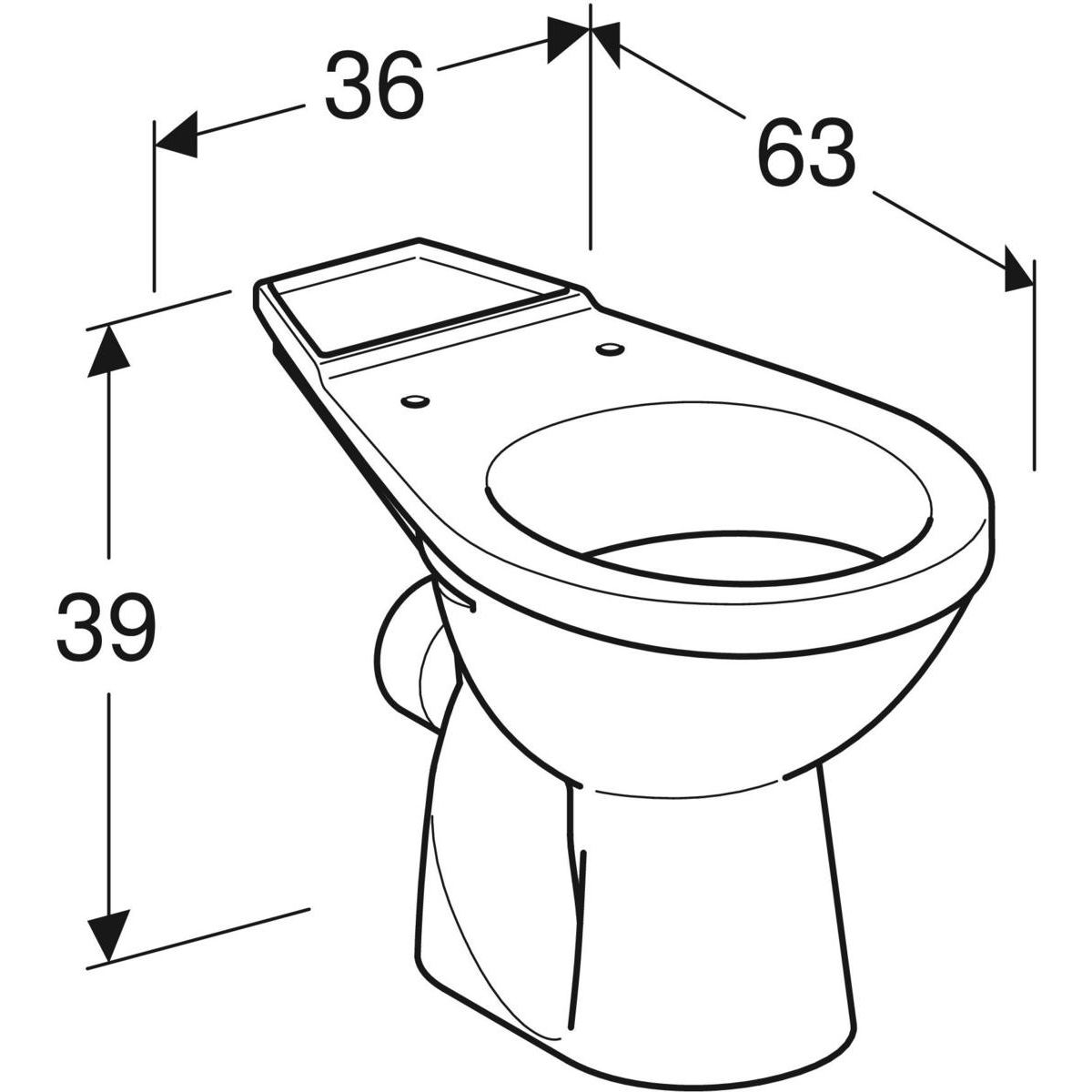 Zastosowanie: Do montażu w małych łazienkach i w łazienkach gościnnych Charakterystyka: Stojący Ceramiczna miska WC lejowa Odpływ poziomy Typ 1, pełna ilość 6 / 5 l, wg EN 997 Z krawędzią Zakres dostawy: Miska ustępowa Elementy mocujące