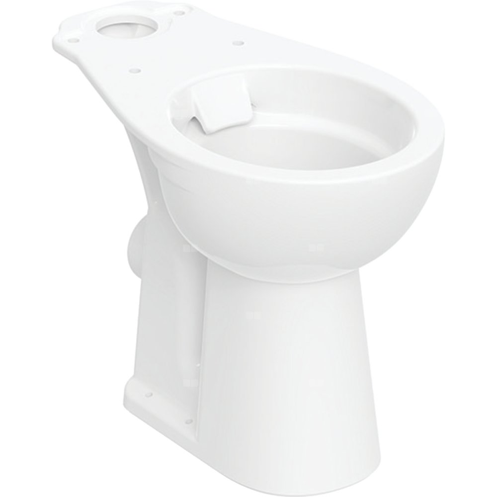 Stojący Ceramiczna miska WC lejowa Bezkrawędziowa miska ustępowa z techniką spłukiwania Rimfree Typ 1, pełna ilość 6 / 4 l, wg EN 997 Wylot poziomy Z czterema punktami stałymi Podwyższona wysokość siedziska Do spłuczki nasadzanej Materiał: Ceramika sanitarna Kolor: Biały