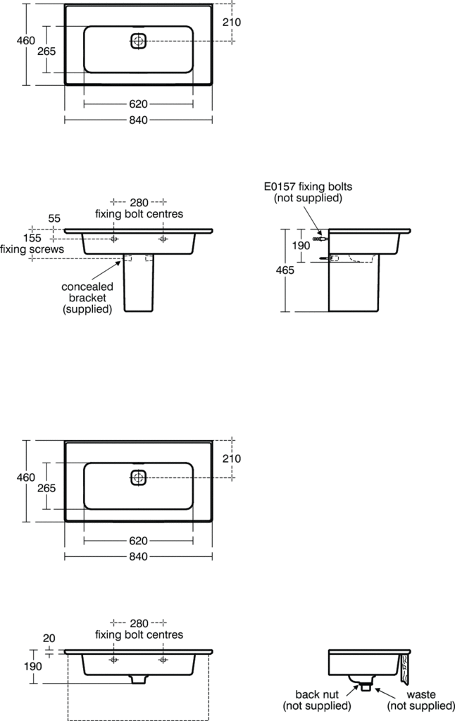 Półpostument Strada II do montażu z umywalkami 120, 100, 80, 60, 50 cm. Zestaw montażowy TV63667 w komplecie (mocowanie półpostumentu bez wiertła).