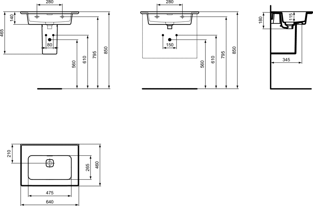 • Typ: Wpuszczane w blat/Z powierzchnią boczną