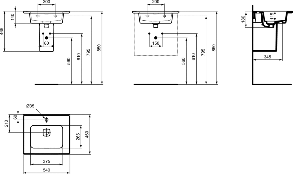 - Typ: Wpuszczane w blat/Z powierzchnią boczną