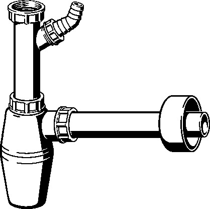 Syfon butelkowy, tworzywo sztuczne. Wyposażenie: Butelka Ø 50 mm, przyłącze do węża odprowadzającego wodę odpływową, nr wzoru 5727PL, nr kat. 703 349,