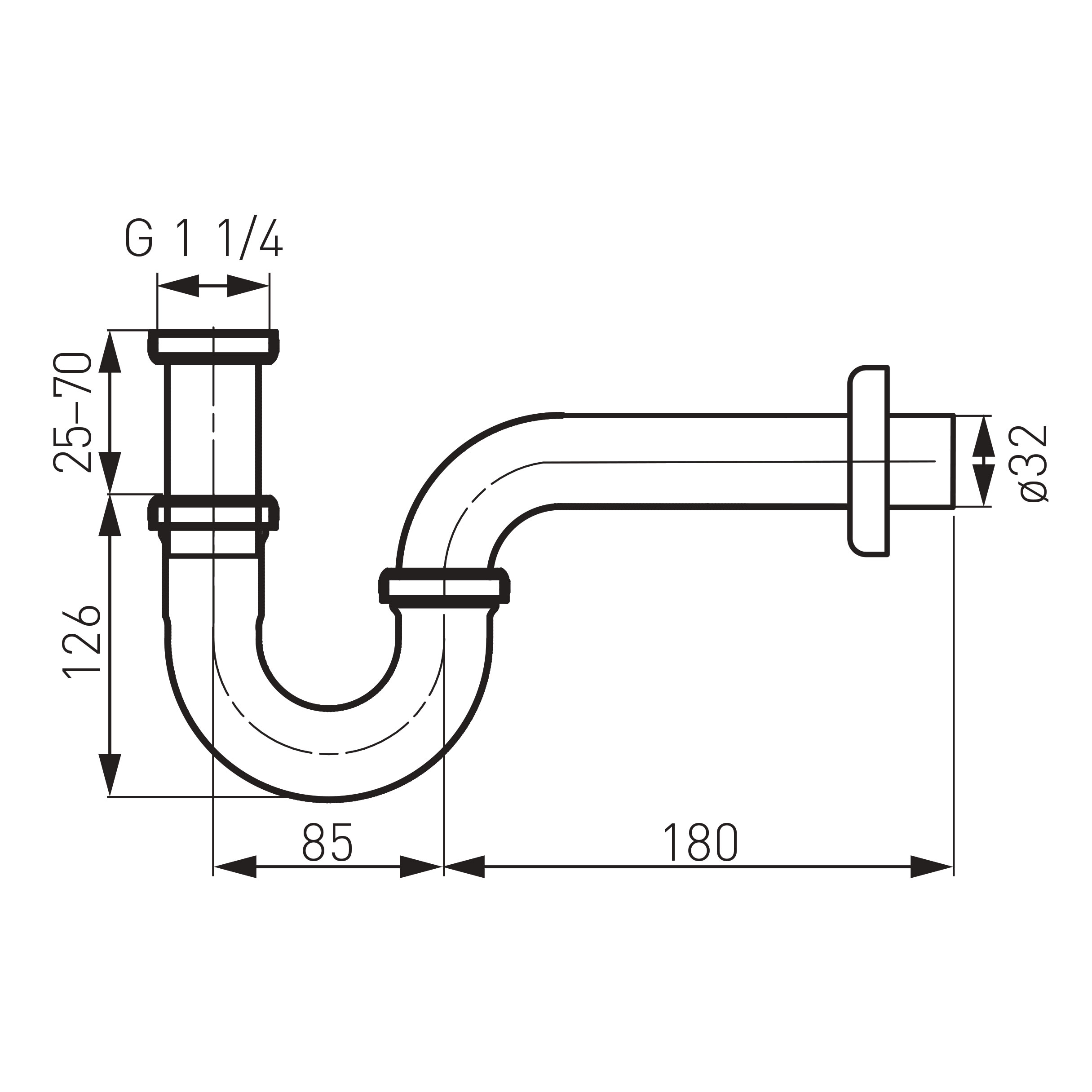 Syfon mosiężny rurowy G5/4, chrom