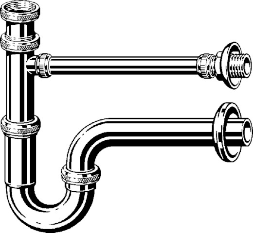 Syfon rurowy, mosiądz chrom.. Wyposażenie: Dwuzłączka regulowana, przyłącze odprowadzające wodę ze skroplin, rura regulowana 160 mm, łuk odpływowy 170 mm, wg PN-EN 274, nr wzoru 5611.02, nr kat. 109 950, G: 1¼ DN: 32