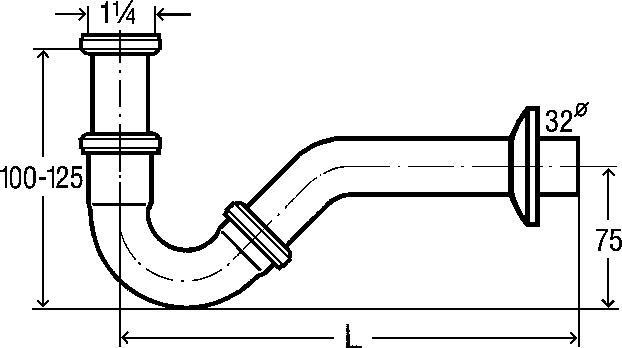 Syfon rurowy przeznaczenie: bidet, mosiądz, nr wzoru 5535 G: 1¼ DN: 32 L: 280 wykonanie: chromowane