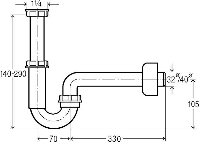 Syfon rurowy tworzywo sztuczne, nr wzoru 5611K G: 1¼ DN: 32