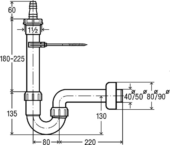Syfon typu P (poziomy)