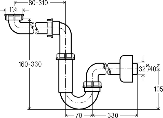 Syfon rurowy tworzywo sztuczne, z możliwością pozyskania dodatkowej przestrzeni, nr wzoru 5729 G: 1¼ DN: 40