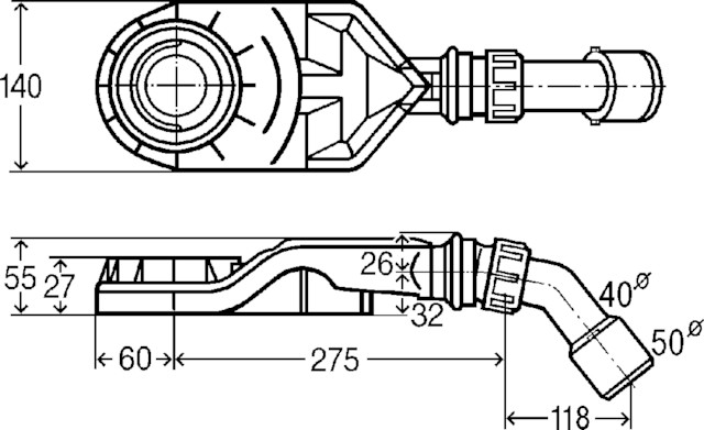 Advantix-syfon, (wersja remontowa). Przeznaczenie: przezbrojenie odpływów narożnych Advantix na wysokość montażu 66 mm, brak zastosowania: Advantix-odpływ narożny nr wzoru 4973.81. Zastosowanie: Advantix-odpływ narożny nr wzoru 4972.80, 4972.81, 4972.82, 4972.83. Wyposażenie: Możliwość czyszczenia przyłącza, wyjmowane sitko. Dane techniczne: wysokość zamknięcia wodnego 25 mm, wydajność odpływu przy wysokości spiętrzenia 10 mm 0,4 l/s, wydajność odpływu przy wysokości spiętrzenia 20 mm 0,45 l/s, wydajność odpływu wg PN-EN 1253, nr wzoru 4980.65, nr kat. 690 397, DN: 40/50