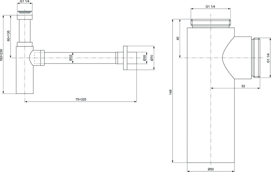 Syfon dekoracyjny G1 1/4. W przypadku montażu bez półpostumentu i szafki pod umywalkę.