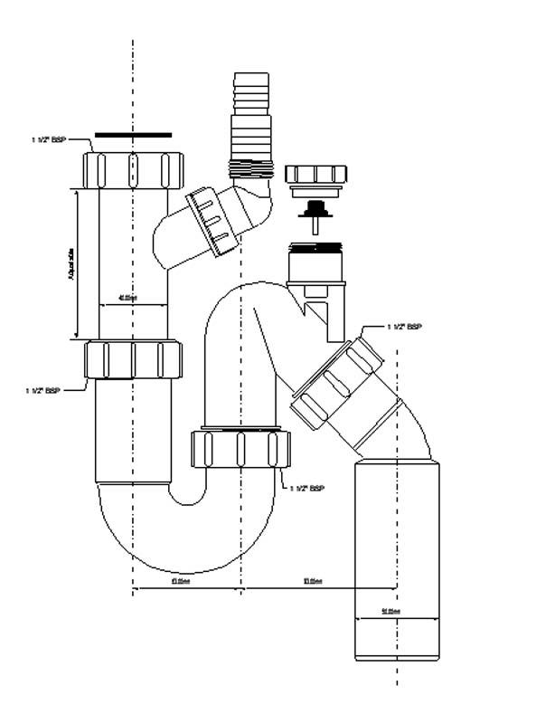 Syfon zlewozmywakowy rurowy 11/2"x50mm z podłączeniem do pralki lub zmywarki, z napowietrznikiem, bez spustu.