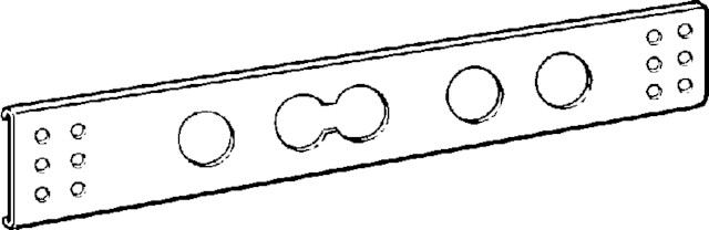 Szablon montażowy. Przeznaczenie: montaż puszki przyłączeniowej do instalacji w ścianie murowanej. Zastosowanie: Sanfix P-gniazdo przyłączeniowe 70° nr wzoru 2120.32, Sanfix P-gniazdo przyłączeniowe 90° nr wzoru 2120.01, stal, nr wzoru 2021.8, nr kat. 117 344, rozstaw: 80/100/120/150/200
