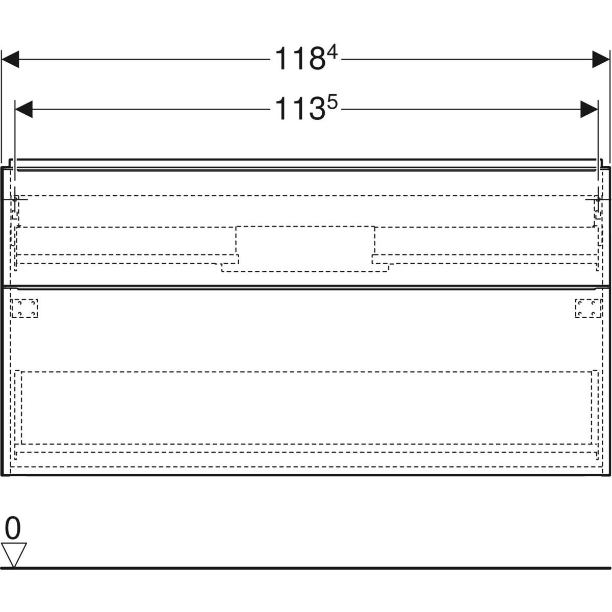 Szafka pod umywalkę Geberit iCon, z dwoma szufladami: Szerokość umywalki=120cm, Korpus i front: biały / lakierowany na wysoki połysk, Uchwyt: chromowany z połyskiem