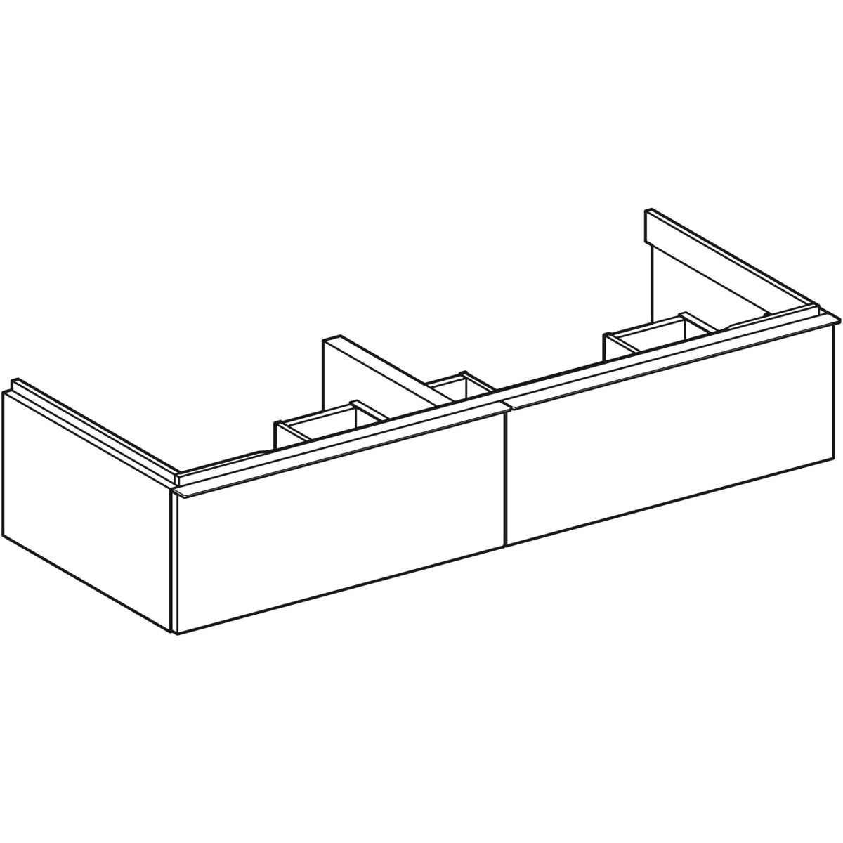 Szafka pod umywalkę podwójną Geberit iCon, z dwoma szufladami: Szerokość umywalki=120cm, H=24.7cm, Korpus i front: biały / lakierowany matowy, Uchwyt: biały / powlekany proszkowo, matowy