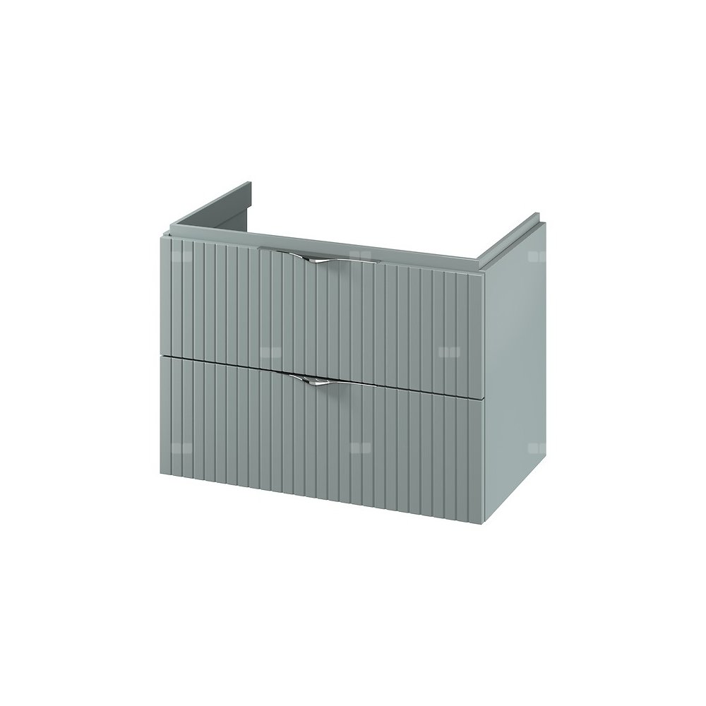 Szafka wyposażona w dwie pojemne szuflady z pełnym dnem, zapewniające więcej miejsca do przechowywania różnych akcesoriów łazienkowych - w związku z tym rekomendujemy zastosowanie syfonu oszczędzającego miejsce. Zastosowany mechanizm soft close gwarantuje ciche i płynne zamykanie, co podnosi komfort użytkowania. Front szafki wykonany jest z ryflowanej płyty MDF foliowanej w matowej wersji, co nadaje jej subtelną fakturę i elegancki wygląd. Korpus szafki to płyta wiórowa laminowana, również w matowym wykończeniu. Produkt doskonale komponuje się z umywalkami meblowymi, wpuszczanymi w blat, jak i nablatowymi, dzięki czemu można go łatwo dopasować do różnych aranżacji łazienkowych. Dodatkowo, w zestawie znajdują się dwa komplety metalowych uchwytów (czarne i chromowane), umożliwiające dopasowanie wyglądu szafki do preferencji użytkownika.Szafka jest przeznaczona do samodzielnego montażu, co pozwala na łatwą personalizację i dostosowanie do własnych potrzeb.