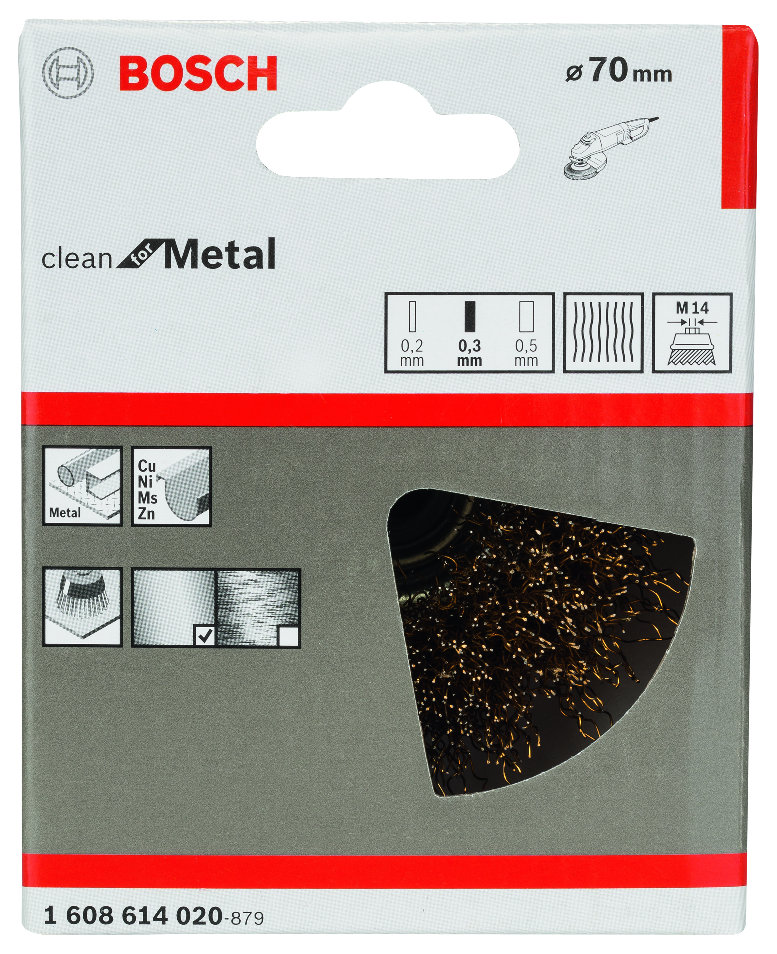 Tekst produktu, osprzęt szary Szczotka garnkowa – drut falisty, mosiądzowany Do lekkich i średniociężkich prac związanych z czyszczeniem średnich i dużych powierzchni z metali i metali kolorowych, jak np. usuwanie powłok, usuwanie korozji, czyszczenie desek szalunkowych i elewacji, bruzdkowanie, matowanie i usuwanie lakieru. Do szlifierek kątowych z gwintem M 10 lub M 14 oraz szlifierki prostej GGS 6 S Professional Zaleta: ochrona antykorozyjna dzięki zastosowaniu drutu powlekanego mosiądzem.