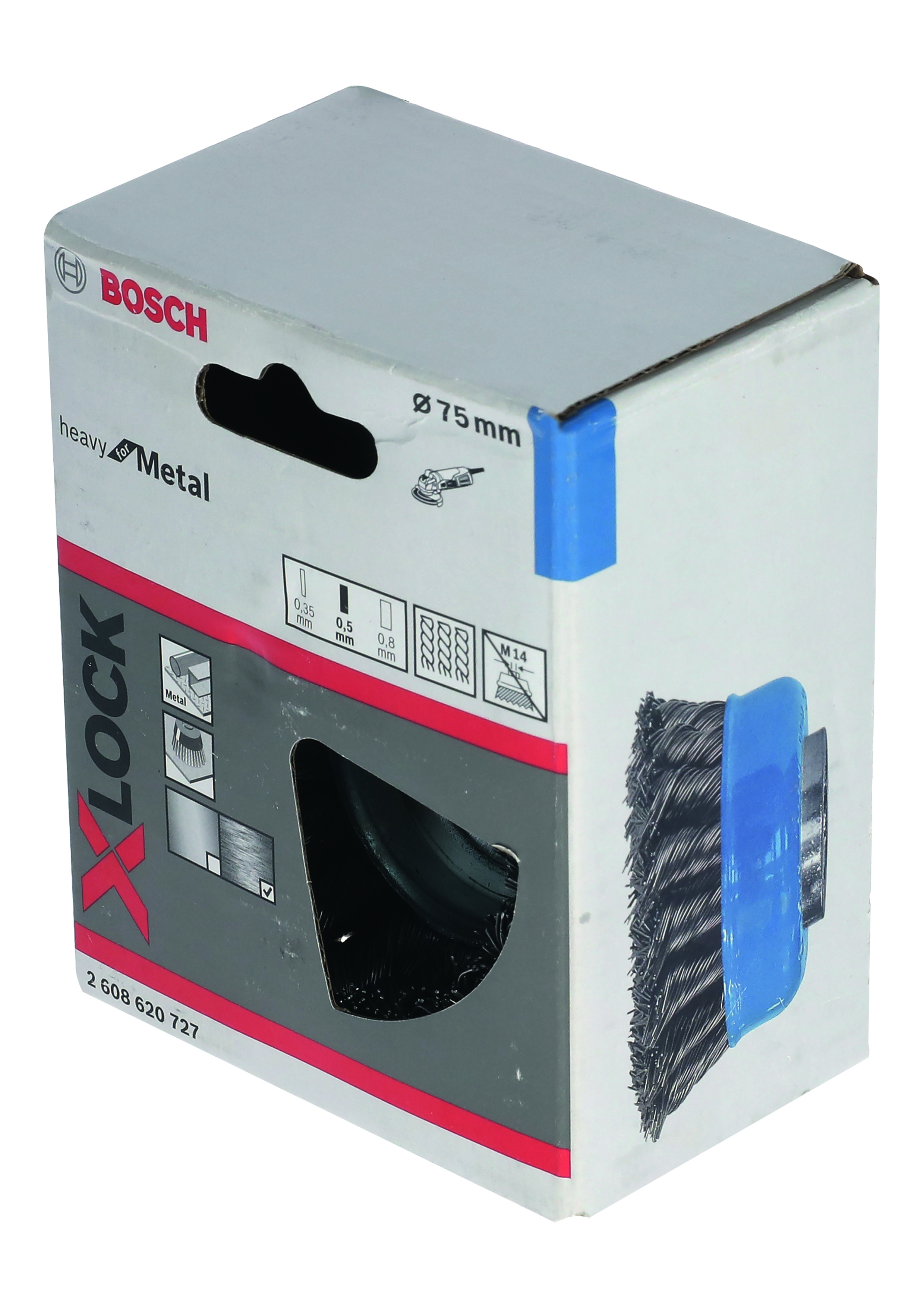 Szczotka garnkowa z systemem X-LOCK, pleciona, 75, stalowa 75 mm, 0,5 mm, X-LOCK