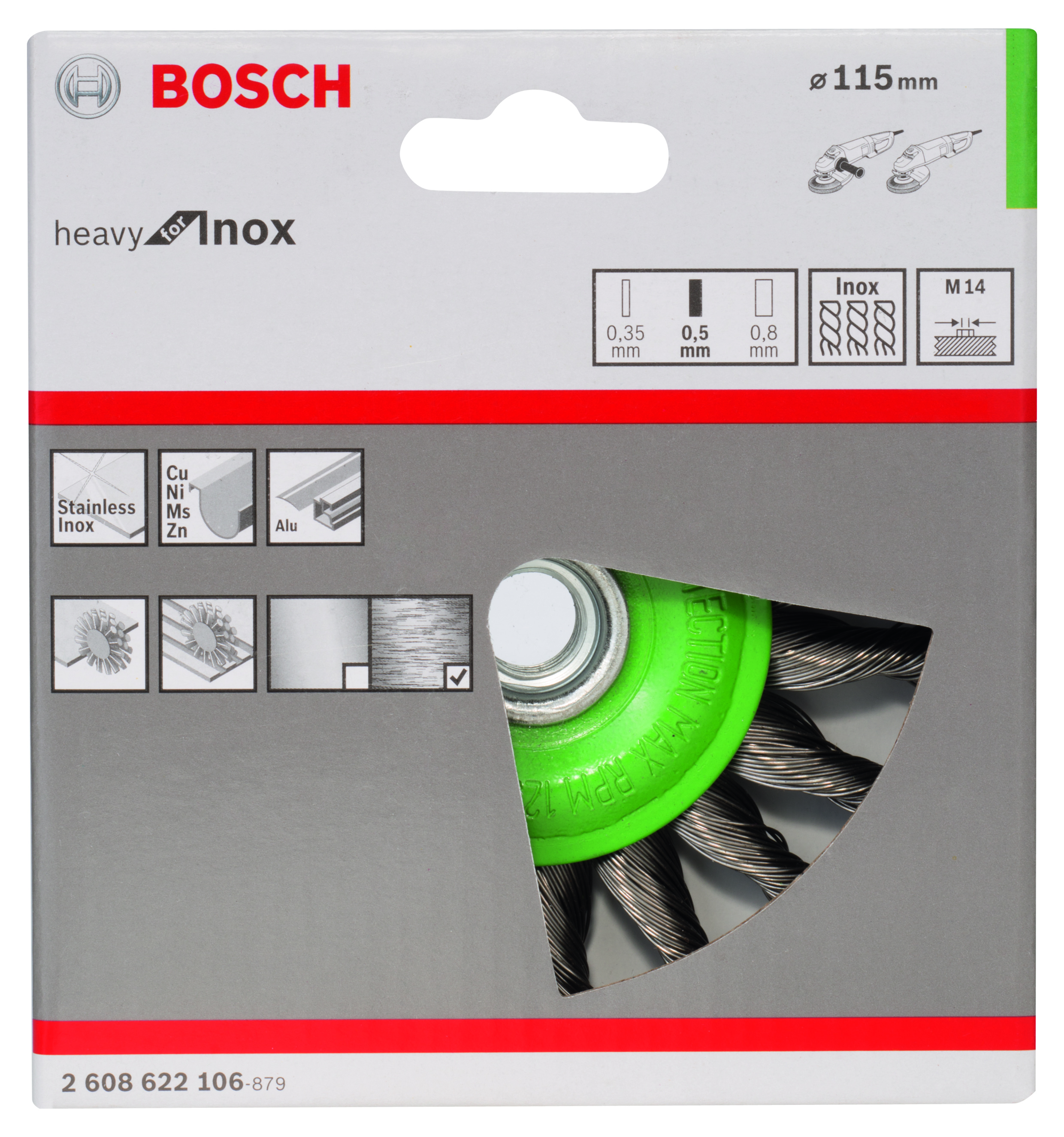 Do ciężkich prac związanych z czyszczeniem z dużą prędkością obwodową mniejszych powierzchni metalowych, rowków lub krawędzi ze stali szlachetnej, aluminium lub metali kolorowych, jak np. usuwanie silnej korozji, usuwanie lakieru, żużlu, zadziorów i zgorzeliny.