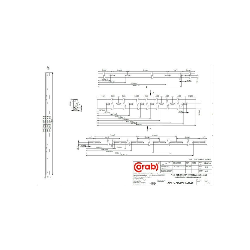 Szyna skośna L4800 (105x50x3)
