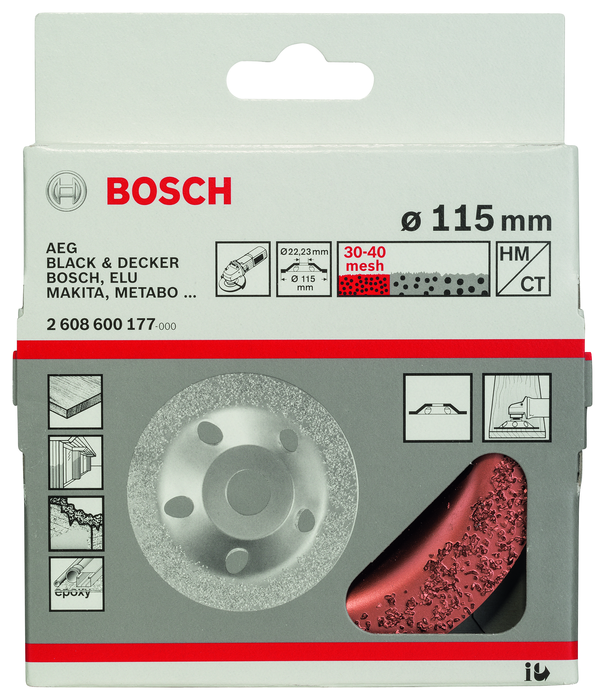 Tekst produktu, osprzęt szary Płaskie Odpowiednie do wszystkich szlifierek kątowych 115 i 125 mm z gwintem M14 Aby pracować bez pyłu, wybierz odpowiednią pokrywę odsysającą do szlifierki kątowej firmy Bosch: 2605510224 lub 1605510281