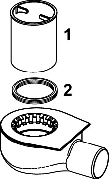Kolano odpływowe do rynny prysznicowej TECEdrainline do montażu na korpusie rynny, odpływ obrotowy 360°, do przyłączenia bocznego do przewodu kanalizacyjnego DN 50, z wyjmowaną rurką spiętrzającą syfonu
