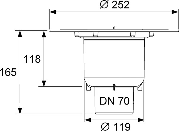 Odpływ podłogowy TECEdrainpoint S DN 70, pionowy, standard, z tworzywa sztucznego (PP), kontrola jakości wg PN-EN 1253.
