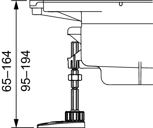 Stopki montażowe do syfonu odpływowego TECEdrainprofile „standard” i „niskiego” do łatwej regulacji wysokości i wypoziomowania podczas montażu na stropie. Zakres regulacji dla syfonu „standard”: 95-194 mm, oraz dla syfonu "niskiego": 65-164 mm (od dolnej krawędzi stopki do górnej krawędzi odpływu lub jastrychu).