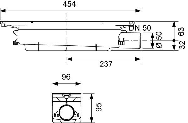 Minimalna wysokość montażowa 95 mm - od dolnej krawędzi odpływu do górnej krawędzi jastrychu (bez płytek)