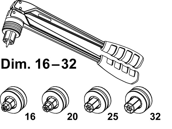 TECEflex ręczne narzędzie kalibrujące typu RAZ-V w zakresie średnic 16 - 32 mm.