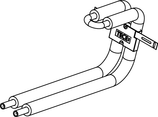 Granitur montażowy do kompaktowego grzejnika z wbudowanym zaworem, z zaizolowaną rurą wielowarstwową, izolacja 9 mm, λR 0,040 W/(mK).