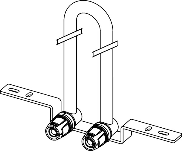 Garnitur montażowy do grzejników z połączeniem wtykowym. Do kompaktowego grzejnika z wbudowanym zaworem, podłączonego do ściany, do instalacji grzewczych. Rurka miedziana 15 mm, niklowana.