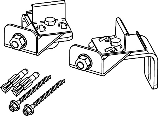 Dwóch mocowań ściennych do montażu narożnego o zmiennym kącie