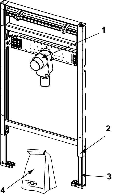 Stelaż montażowy pod umywalkę do mocowania na kształtownikach stalowych TECEprofil lub do montażu w ścianach z profili metalowych lub drewnianych oraz jako ścianka przednia lub moduł narożnikowy. Do montażu umywalek podbudowanych, zgodnie z DIN 18040 – 1 (budownictwo bez barier – część 1: budynki dostępne publicznie)