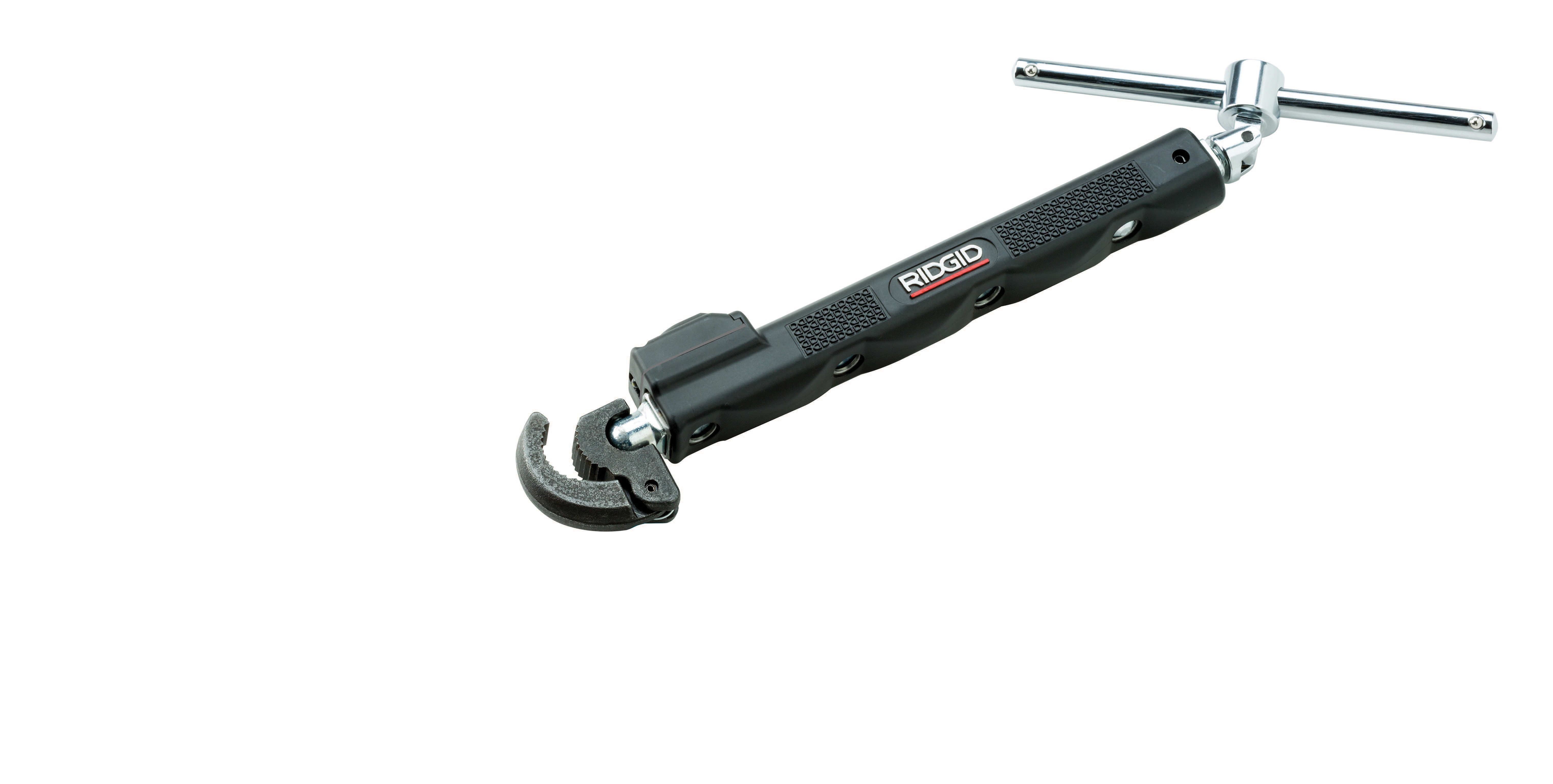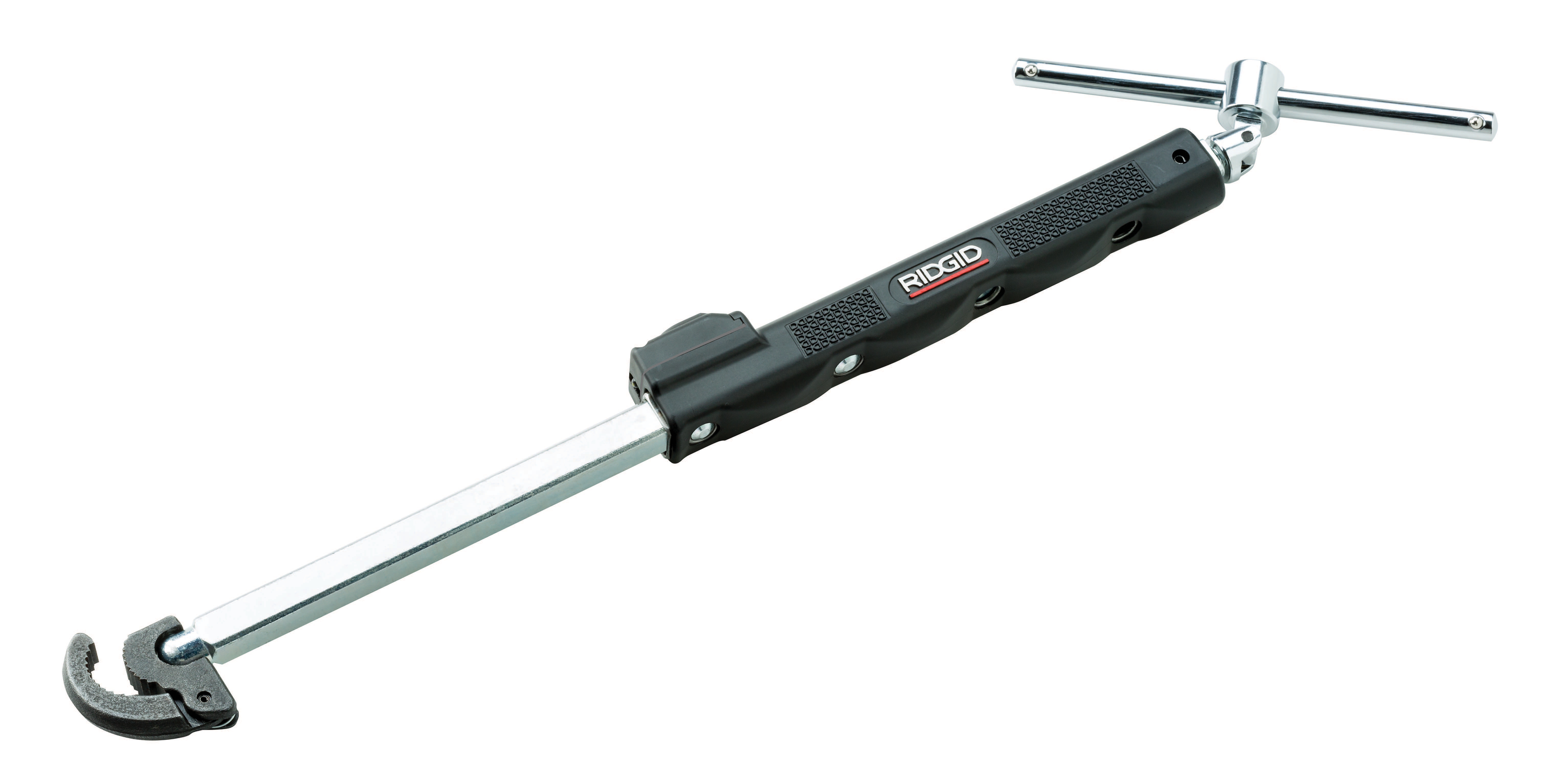 Innowacyjna konstrukcja sprawia, że praca z elementami kranu i nakrętkami ustalającymi jest łatwiejsza niż kiedykolwiek. Wbudowane wodoodporne diody LED bezpośrednio oświetlają miejsce pracy. Obrotowa, zdejmowana rękojeść w kształcie litery T ułatwia pracę w trudno dostępnych miejscach. Kwadratowy uchwyt 3/8" umożliwia stosowanie klucza grzechotkowego lub nasadkowego z długim ramieniem w celu zwiększenia siły nacisku i uzyskania maksymalnego momentu dokręcania. Ergonomiczna rękojeść z teksturą zwiększa nacisk i zapewnia pewny chwyt. Nowy korpus umożliwia łatwe dostosowanie długości w zakresie od 10" do 17". Ulepszony mechanizm sprężynowy szczęk zapewnia dłuższy czas eksploatacji. Diody LED z automatycznym wyłącznikiem zapewniają maksymalny czas eksploatacji baterii. Rękojeść z możliwością obrotu o 180 stopni i uchytem 3/8". Profilowana nakładka uchwytu zapewniająca maksymalny komfort. Łatwo wymieniane baterie. Ulepszony przycisk mechanizmu teleskopowego. Zakres średnic - 1/2" do 1-1/4" (12 mm do 32 mm). Masa - 2,5 funta. Długość - 12" do 17" (w pełni wysunięty)