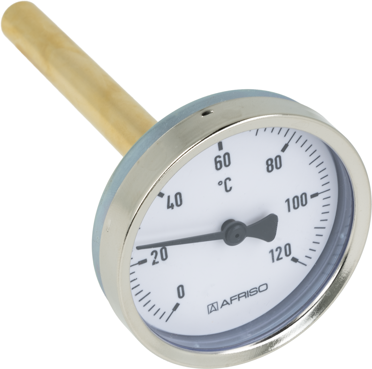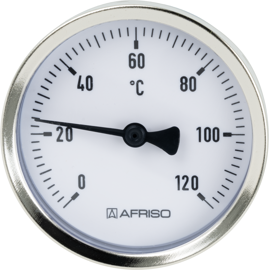 Termometr bimetaliczny AFRISO BiTh fi 63 mm 0…120'C tuleja 100 mm połączenie ax