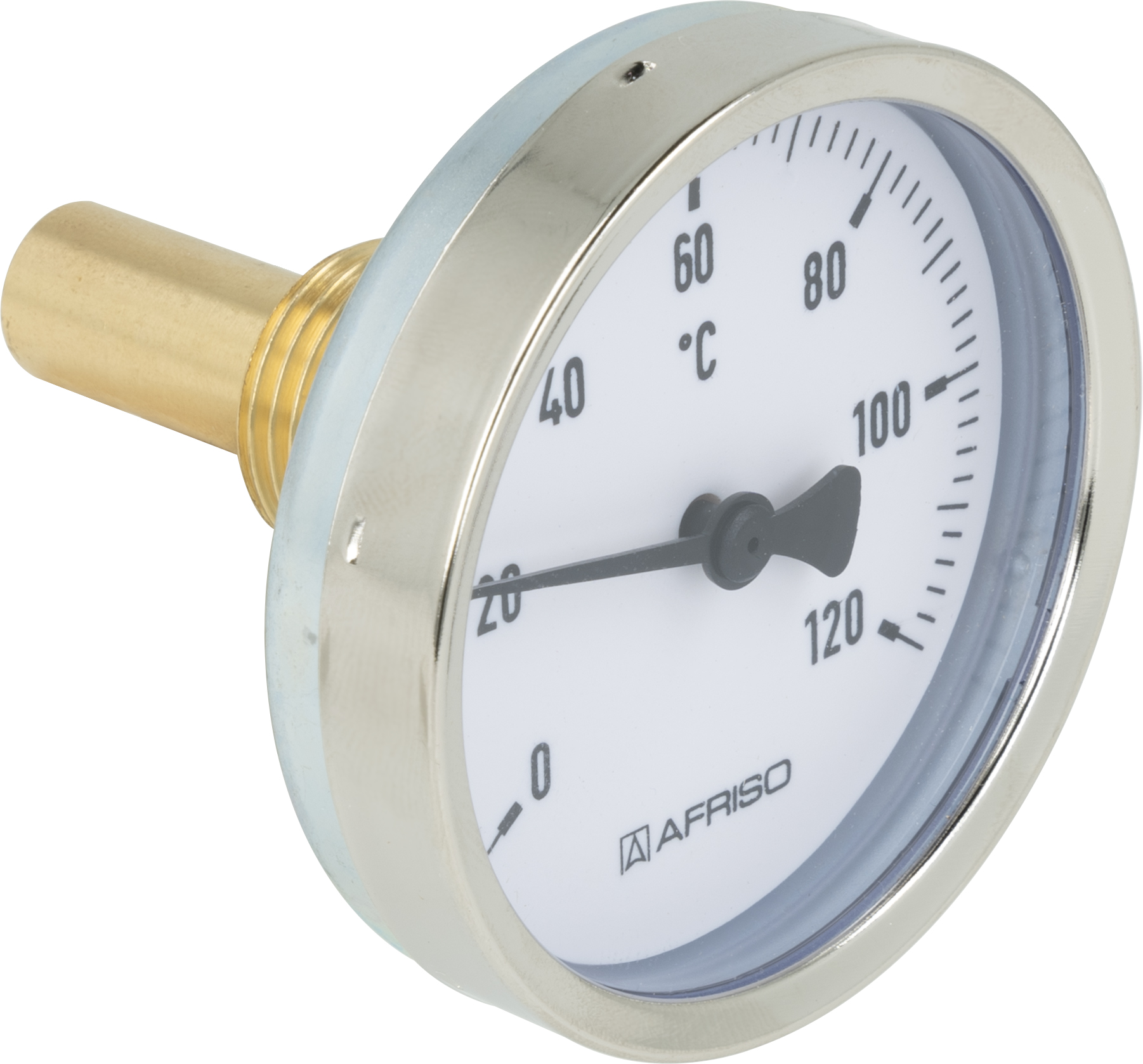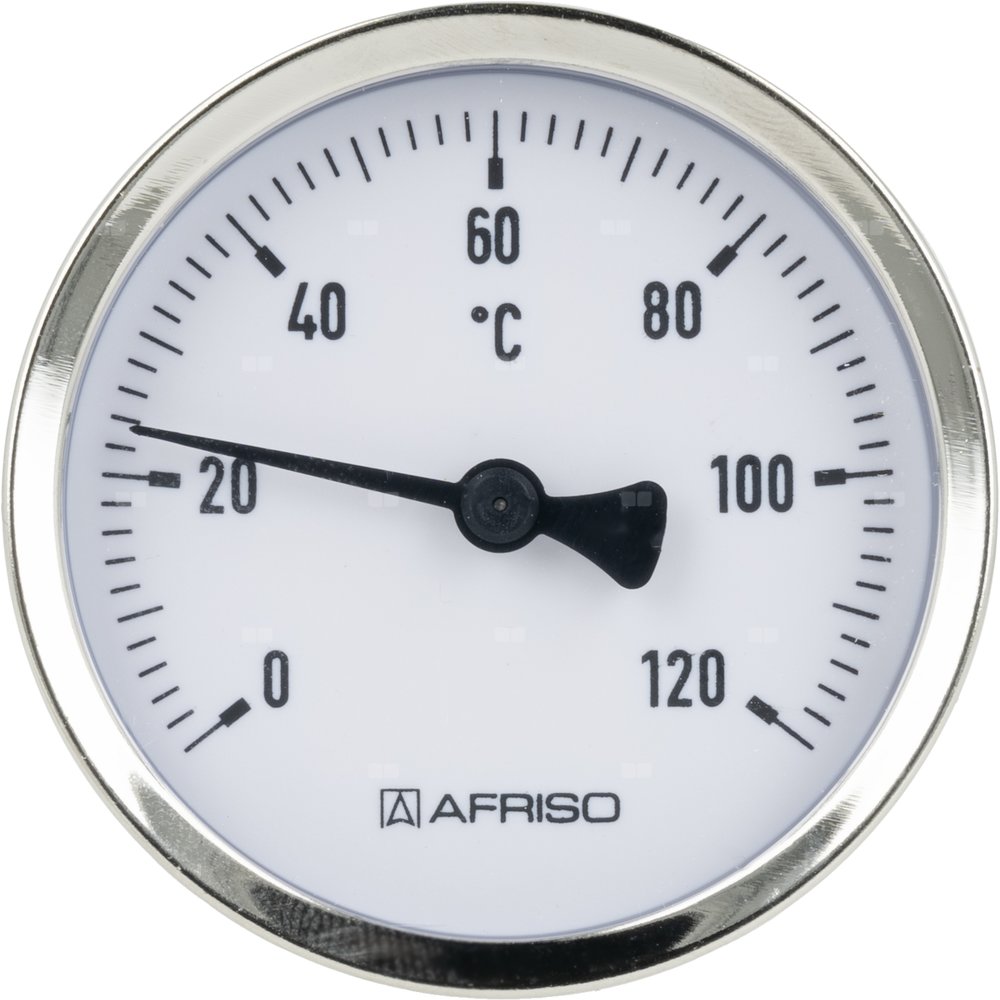 Termometr bimetaliczny AFRISO BiTh fi 63 mm 0…120'C tuleja 40 mm połączenie ax