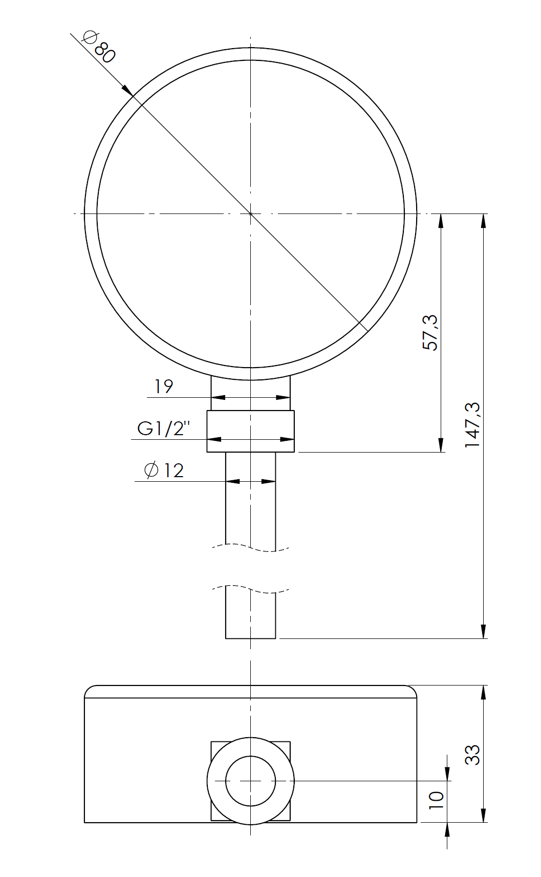 Termometr bimetaliczny AFRISO BiTh fi 80 mm -20…60'C tuleja 100 mm połączenie rad