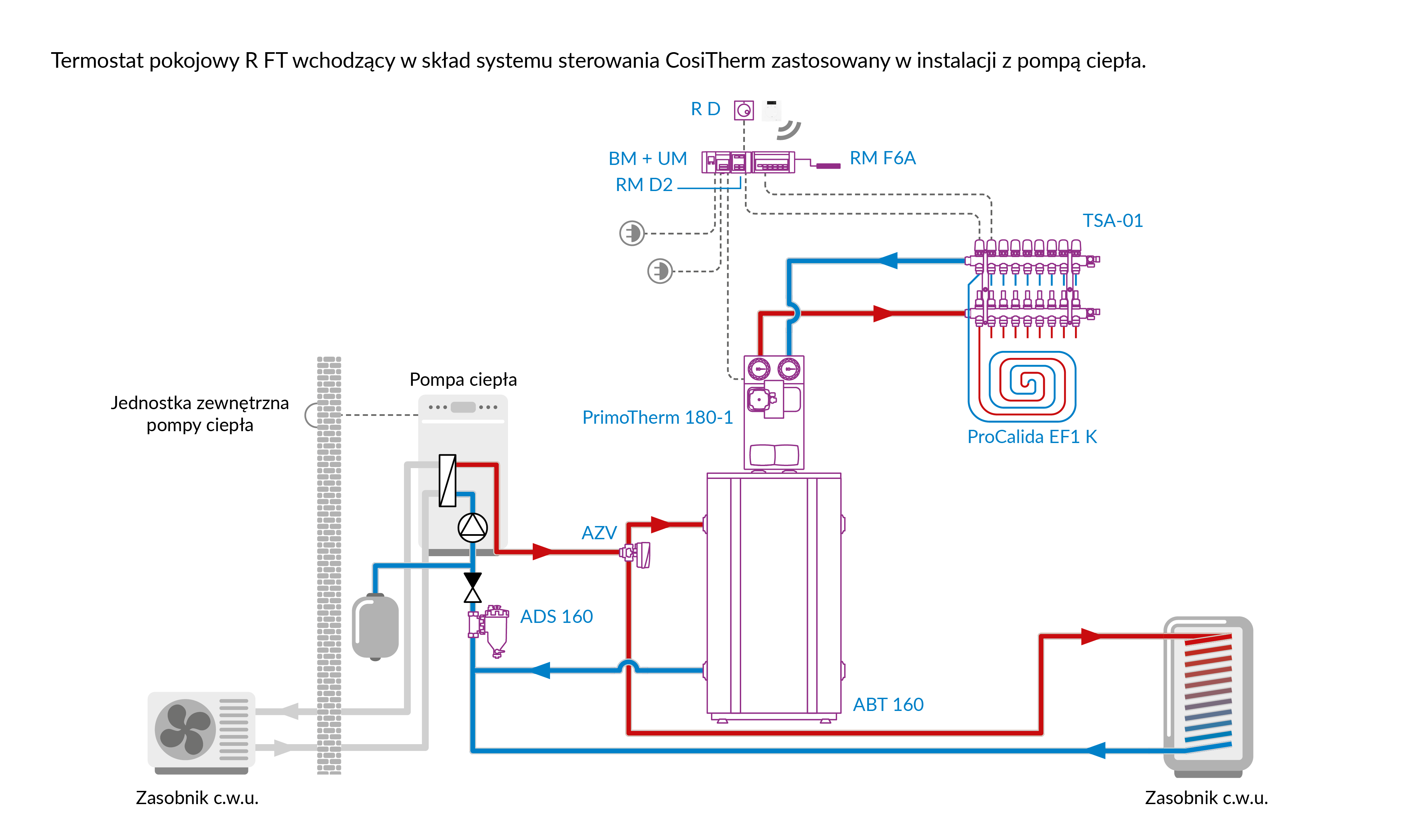 Utrzymuje zadaną temperaturę w pomieszczeniu/strefie oraz przesyła dane na temat temperatury rzeczywistej do modułu sterującego RM F.