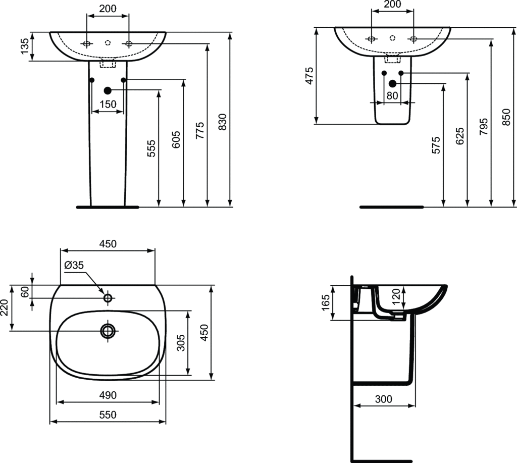 Umywalka Tesi z 1 otworem na baterię wybitym centralnie. Do montażu z: postumentem T033501, półpostumentem T033401 lub samodzielnie z syfonem.