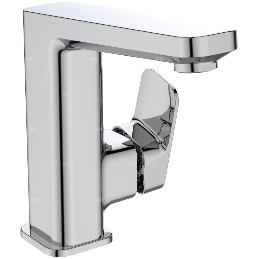 Bateria umywalkowa wysoka z głowicą ceramiczną 28 mm i ogranicznikiem temperatury. Mosiężny, odlewany korpus. Metalowy uchwyt z nadrukowanymi czerwonymi i niebieskimi oznaczeniami bez metalowego automatycznego korka. Perlator typu Cascade z ogranicznikiem przepływu wody do 5 l/min i regulacją kierunku strumienia. Elastyczne węże przyłączeniowe z gwintem G3/8". System montażu EASY-FIX. Metalowy pierścień.